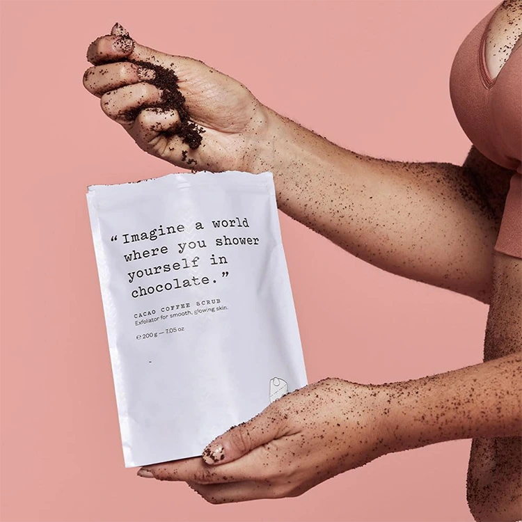 Dizajn z vrečami 200G je primeren za nošenje in shranjevanje. Ne glede na to, ali uživate v razkošnem trenutku za nego kože doma ali potujete, lahko zlahka zadovolji vaše potrebe po negi kože. Vsakič, ko ga uporabljate, vzemite primerno količino pilinga za kavo Coco, jo enakomerno nanesite na kožo telesa in za trenutek nežno masirajte. Priča boste neverjetnim spremembam kože. Z izjemno visokimi stroški omogoča več ljudem, da imajo enostavno izkušnjo s kožo na profesionalni ravni.